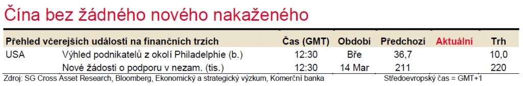 Centrální banky a vlády přijímají další kroky podporující chod ekonomiky během pandemie SARS-CoV-2. Z Číny přicházejí zprávy o zlepšení situace.