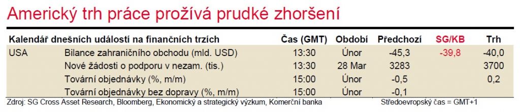 Obavy z propadu trhu práce v USA dnes dokreslí další týdenní údaje o počtu žádostí o podporu v nezaměstnanosti. Čeká se jejich další extrémní nárůst.