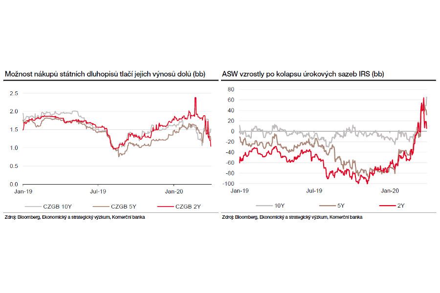 Před týdnem ministryně financí oznámila, že se s guvernérem ČNB domluvila na nákupech státních dluhopisů centrální bankou, který tak ulehčí vládě financovat plánovaný deficit. Součástí dohody také bylo schválení novely zákona o ČNB, která by takové nákupy dovolovala. V reakci na to výnosy dluhopisů poklesly s tím, jak trhy začaly věřit, že ČNB spustí historicky první kvantitativní uvolňování. Tato očekávání ve spojení se zlepšením globálního sentimentu také pomohla k rekordní poptávce po státních dluhopisech a pokladničních poukázkách v aukcích Ministerstva financí v minulém týdnu.