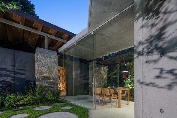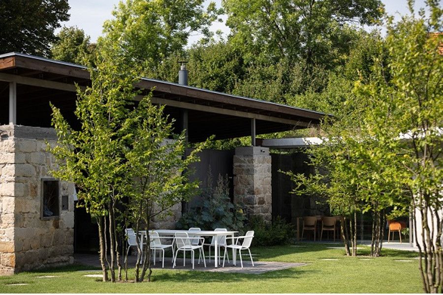 V roce 2006 koupil Radek Leskovjan, grafik a designér značky UAX!, pozemek uprostřed obce Kojetín u Nového Jičína. Na kraji parcely o velikosti 4 300 metrů čtverečních stála na kopci s výhledem do krajiny pobořená kamenná stěna hospodářského stavení. Nejprve na pozemku vznikl v roce 2007 obytný ateliér UAX!, později přibyla betonová přístavba, která je s původní stodolou propojena proskleným krčkem. Tato na první pohled nenápadná přístavba, která získala na konci září titul Stavba Moravskoslezského kraje 2019, se čerstvě pyšní také prestižním titulem Stavba roku 2020. Navíc za osobitý a citlivý vstup moderní architektury do prostoru staré zahrady, zdůraznění genia loci místa a filozofie nezasahování, byla oceněna také zahrada obklopující a prostupující rodinným domem, která získala čestné uznání Zahrada doteku krajiny v soutěži Zahrada roku 2020.