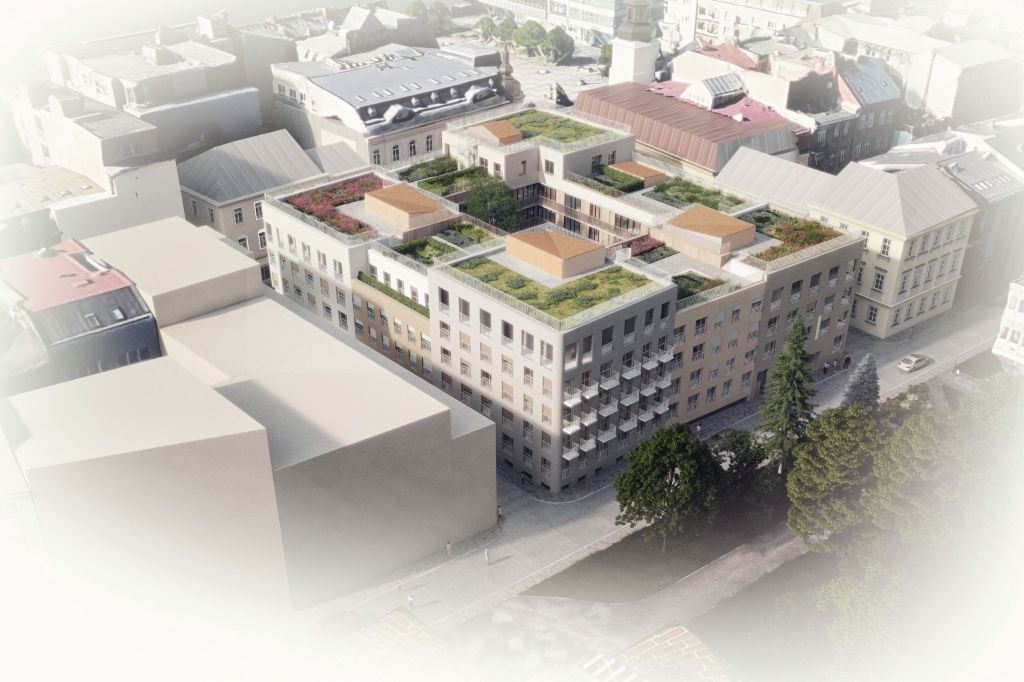 Novostavba obytného bloku tvaru uzavřeného nepravidelného lichoběžníku bude tvořena 5 bloky s 85 byty o velikostech 1+kk až 4+kk, parterem s obchodními prostory a dvěma a půl patry podzemního parkování se 174 stáními. Objekt bude v souladu s trendy soudobé městské architektury citlivé k životnímu prostředí a klimatu disponovat vlastním atriem a bude zastřešený plochými vegetačními střechami.