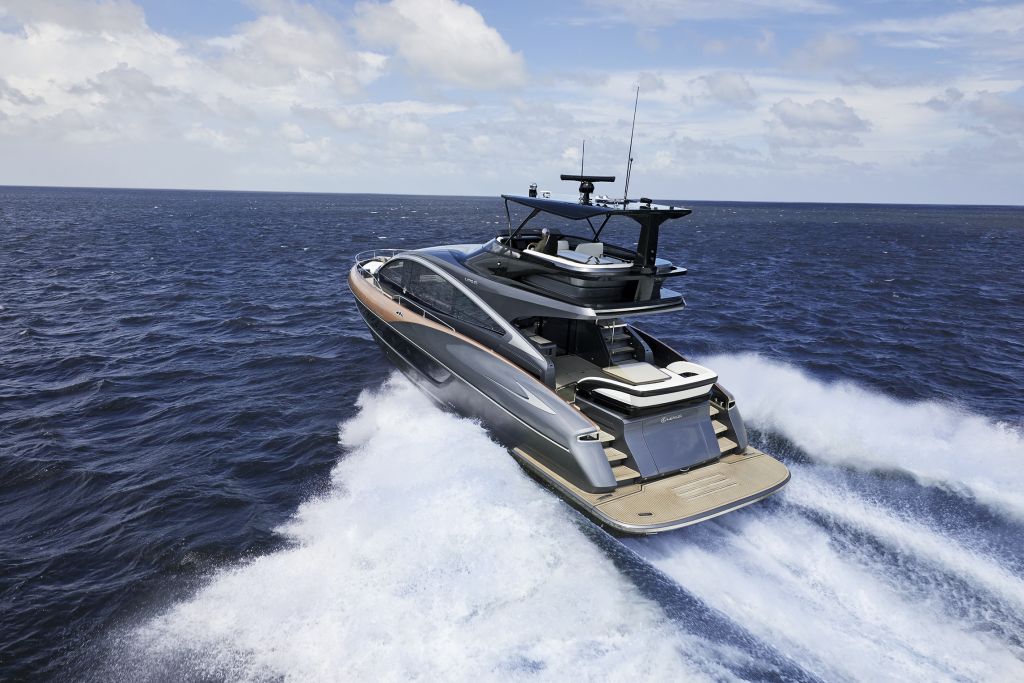 The LY 650 flybridge cruiser retains the vibrant form and beautiful curved lines of the Lexus Sport Yacht Concept and is both elegant and sporty. Its strong and pronounced bow, and dynamic hull boasting one of the widest beams in its class, swiftly reveal the presence of a LY 650, while its coupe-like roofline and accentuated aft hips stress the high level of its cruising performance.