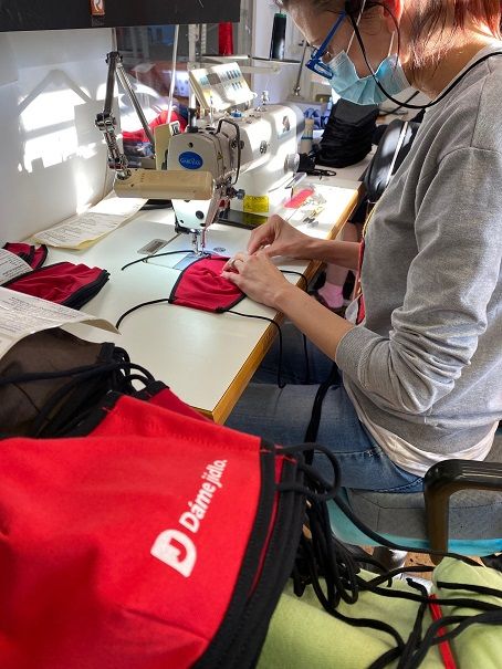 Celá firma nyní funguje v tzv. izolovaném režimu, v němž firemní švadleny od pondělí 16.3 šijí na přenastavených strojích denně stovky ochranných respiračních roušek ozdobených veselým potiskem. Jen za uplynulé dva týdny firma vyrobila a darovala několik set kusů bavlněných respiračních roušek v hodnotě 150 tisíc korun například chirurgickému oddělení nemocnice v Novém Jičíně, nemocnici ve Frýdku-Místku, Vítkovické nemocnici nebo Mobilnímu hospici Strom života v Novém Jičíně a dodávky roušek pro další nemocnice a organizace jsou ve výrobě.
