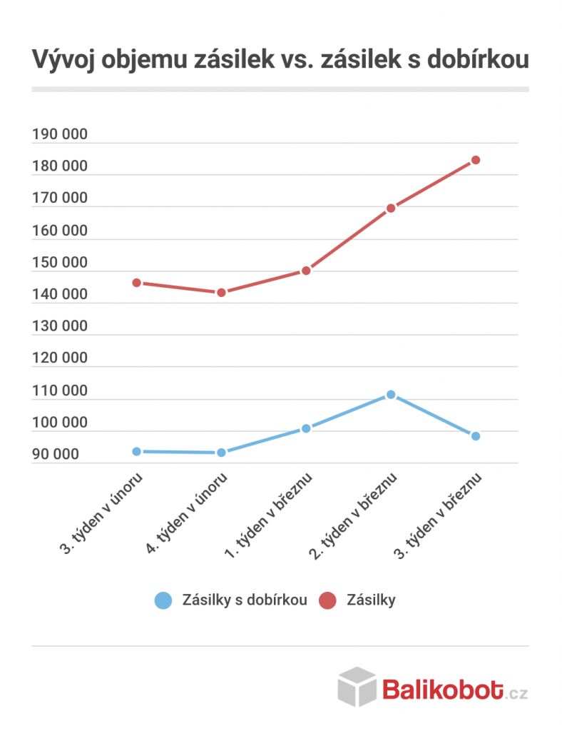 V průběhu března poklesl v ČR objem odeslaných B2B zásilek zhruba o jednu šestinu a o 14 % se snížil také podíl nákupů na dobírku. Vyplývá to z údajů služby Balikobot.cz, která pomáhá firmám agregovat přepravní služby a zefektivnit systém expedice a sledování zásilek.