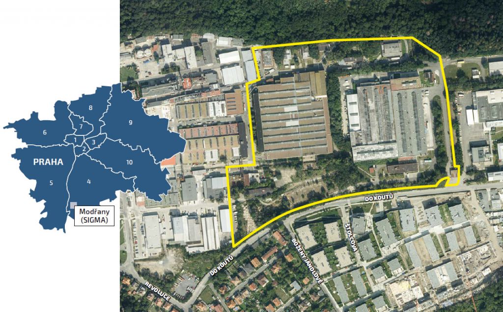 Projekt bude stát na místě bývalé továrny Sigma Modřany, kde se v minulosti ve dvou výrobních halách opravovalo a vyrábělo teplovodní potrubí pro Prahu. V současné době pozemek slouží jako velký uzavřený skladový a průmyslový areál s intenzivní kamionovou dopravou.
