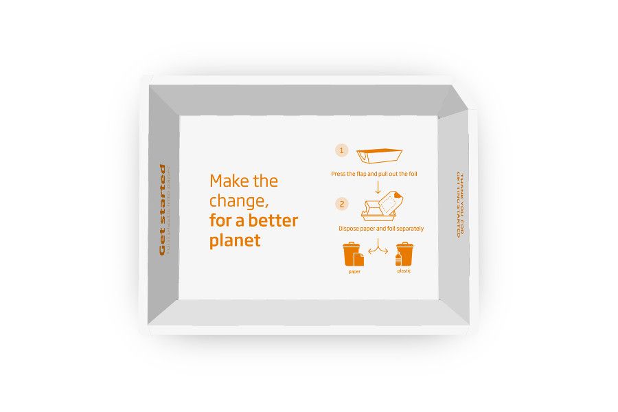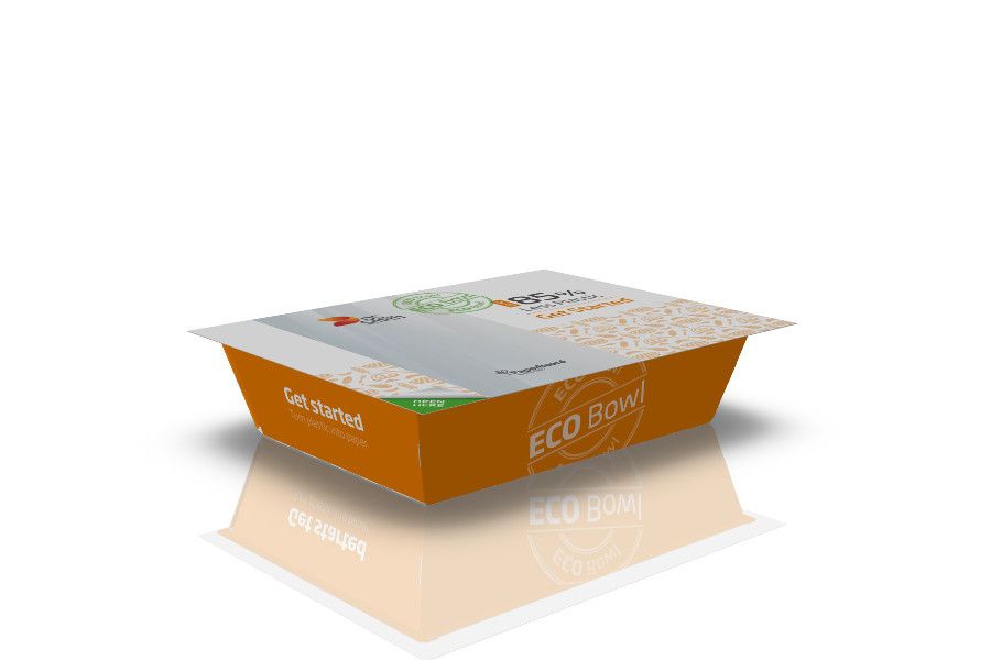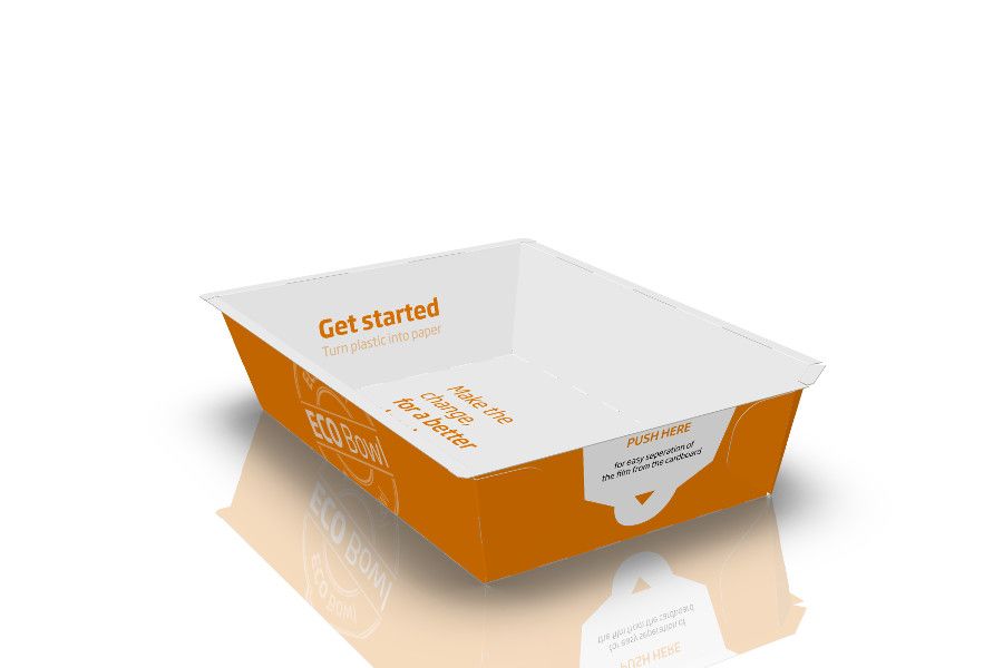 ECO BOWL je plně recyklovatelná miska z vlnité lepenky potažená tenkou skinovou vrstvou fólie. ECO BOWL snižuje použití plastu až o 85% ve srovnání s tradiční plastovou miskou. Skinovou mikro vrstvu i horní fólii lze jednoduše oddělit od kartonové vaničky, kterou lze snadno recyklovat.