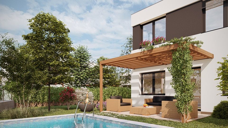 Ke každé z 24 jednotek projektu Domy Klecany – V Remízkách patří pozemek o rozloze 348 až 496 m². „Koncept projektu je promyšlený do nejmenších podrobností. Každá jednotka má svůj vlastní vchod i zahradu, takže zachovává soukromí majitelů. Nejde přitom o řadovou zástavbu: pozemky jsou uspořádány do trojúhelníku, aby se obyvatelé navzájem nerušili. Lidé tak budou žít v blízkosti sousedů, ale zároveň si užijí svůj vlastní prostor – ať už doma, nebo na zahradě. Tu majitelé získají s hotovou terasou s keramickou dlažbou a dřevěnou pergolou s přípravou na elektrickou markýzu,“ uvádí makléřka Šárka Tichá z realitní kanceláře Luxent. Zahrada u většiny domů nabízí dostatek prostoru pro začlenění bazénu.