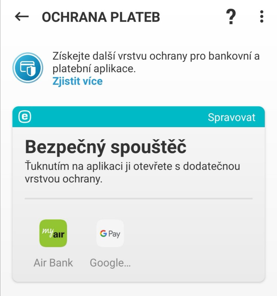 Do seznamu aplikací uživatele je přidána nová ikona aplikace Ochrana plateb. Jejím prostřednictvím může uživatel spouštět aplikace obsahující citlivé finanční údaje tak, aby tyto údaje byly chráněny před škodlivým kódem nebo tzv. falešnými aplikacemi. Falešné aplikace často imitují legitimní platební služby a brány a snaží se takto získávat citlivé údaje. Pokud uživatel aplikaci Ochrana plateb nepoužije, bude ochrana platební aplikace fungovat stejně jako do uvedení této nové vlastnosti.