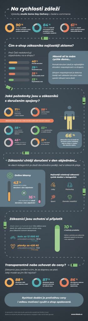 Rychlost doručení zboží je důležitým parametrem, který má pro zákazníka rozhodující roli při výběru mezi e-shopy s podobnou cenou zboží. Až 84 % zákazníků zvolí takový obchod, který je schopen doručit zboží rychleji, a rychlé dodání motivuje 90 % zákazníků k opakovanému nákupu. Příliš dlouhé dodací lhůty jsou naopak pro 61 % nakupujících důvodem k tomu, aby nákupní košík opustili.