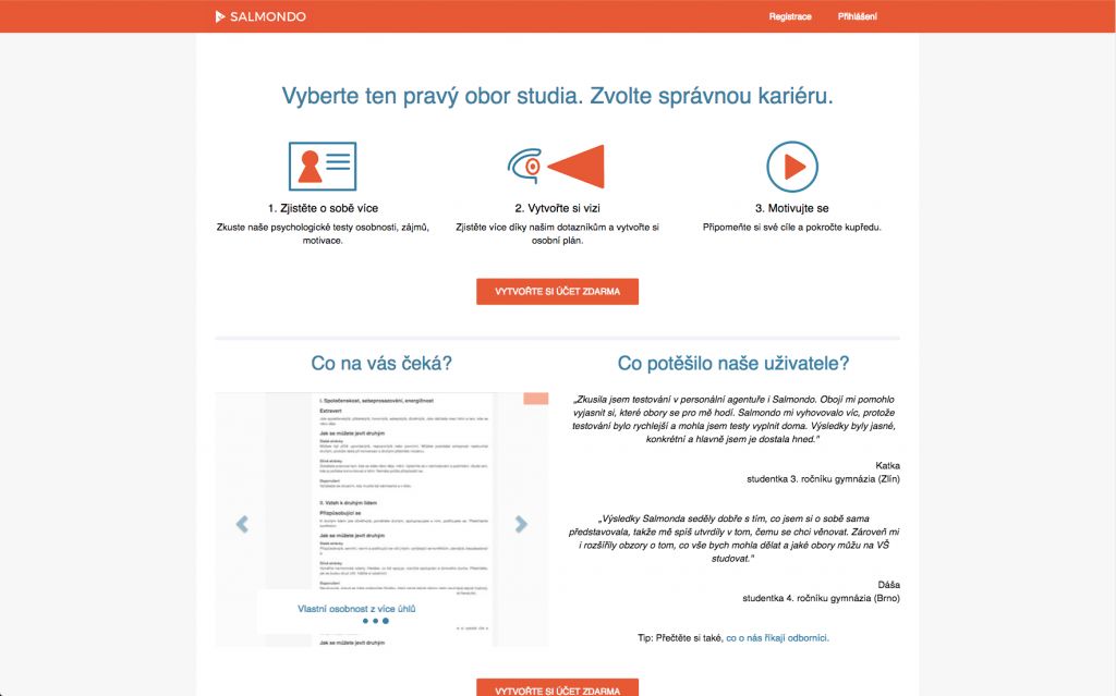 „Salmondo je jednoduchá webová aplikace určená pro žáky a výchovné či kariérové poradce, připravená ve spolupráci s předními českými odborníky. Díky aplikaci se žáci dozví více o sobě a o tom, jaké studium a profesní cesta by pro ně mohla být ta pravá,“ popisuje hlavní myšlenku aplikace jeden z jejích tvůrců Tibor Kučera a podotýká, že aplikaci v současnosti používá přes 25 000 studentů více než 500 českých základních a středních a škol.