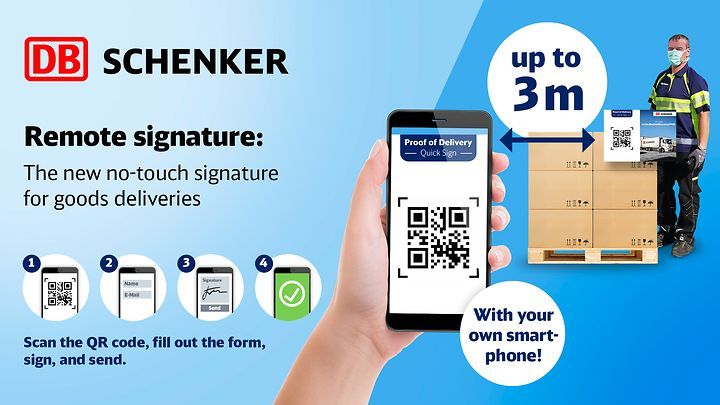 Bezkontaktní potvrzení o doručení zásilky, které vyvinula společnost DB Schenker, zajišťuje bezpečné předání zásilek při dodržení potřebných rozestupů. Technologii, která umožňuje podpis zákazníka až na vzdálenost tří metrů, využívá přední světový poskytovatel logistických služeb v řadě evropských zemí – v Německu, Španělsku, Rakousku, Finsku nebo Švédsku. Od listopadu bude tato technologie dostupná také v České republice.