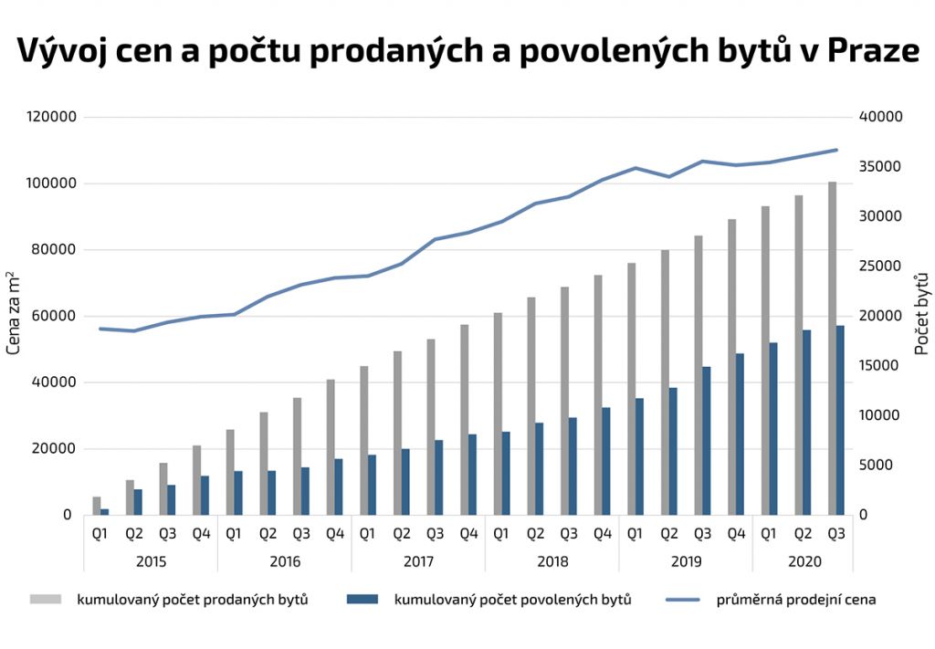 „Jen od začátku roku 2015 se prodejní ceny nových bytů v Praze téměř zdvojnásobily. Hlavním důvodem je to, že se za tu dobu povolilo o polovinu méně bytů, než se prodalo. V loňském roce se v Praze v bytových domech sice povolilo větší množství bytů, kolem pěti a půl tisíce, ale to je pořád jen polovina toho, kolik je potřeba. A letos počet povolených bytů opět výrazně klesl,“ dodává Kunovský. Za pravdu mu dává pohled do statistik Českého statistického úřadu, ze kterých vyplývá, že se letos od ledna do září v Praze povolilo jen 2.798 bytů v bytových domech, což je téměř o třetinu méně než ve stejném období loňského roku.