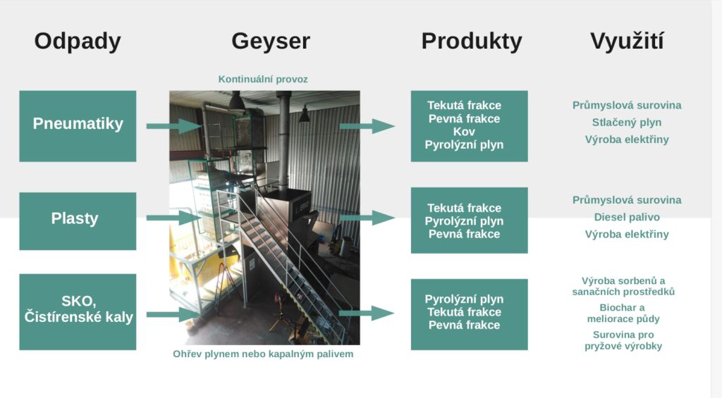 Česká společnost připravuje zahájení sériové výroby jedinečné technologie, která řeší celosvětový problém plastů, pneumatik a komunálního odpadu. Geyser Technology byla vyvíjena bezmála 15 let a v posledních letech prošla úspěšnými zkouškami.