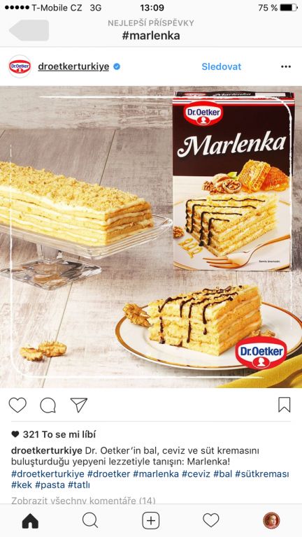 V průběhu listopadu roku 2016 společnosti MARLENKA international s.r.o. zjistila, že společnost Dr. Oetker uvedla na trh v Turecku výrobek (sypkou směs na výrobu dortu) s názvem „MARLENKA“ a prodávala ho ve všech obchodních sítích (např.Carrefour, Metro apod.) V reakci na toto zjištění byly v lednu roku 2017 kontaktovány jak turecká pobočka Dr. Oetker, tak německá centrála společnosti s upozorněním na porušování práv k ochranným známkám společnosti MARLENKA international s.r.o.