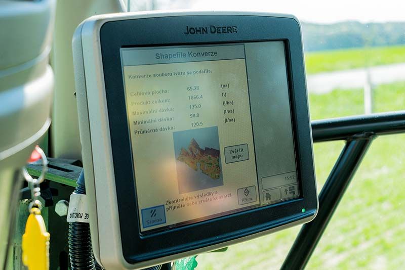 Během jara byl postřikovač v ZOD Hořice agregován ještě s traktorem John Deere 6930 Premium o výkonu 168 koní. Nyní již pracuje ve stálé soupravě s novým 6215R. Postřikovač R952i komunikuje s traktorem přes systém ISOBUS. Díky této fungující komunikaci jsou schopni v Hořicích využívat na postřikovači i sekční kontrolu, která zajišťuje efektivní aplikaci a využití postřiku, snížením přesahů a vynechávek na minimum.