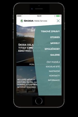 Praktická aplikace pro chytré telefony ŠKODA Media Services se představila v novém designu a s rozšířenými funkcemi. Uživatelé mají k dispozici nové menu a vylepšené uživatelské rozhraní. Kromě nejnovějších tiskových zpráv a novinek z motorsportu přináší také unikátní příběhy spojené se značkou ŠKODA. Aplikace ŠKODA Media Services je k dispozici pro mobilní zařízení s operačním systémem iOS a Android.