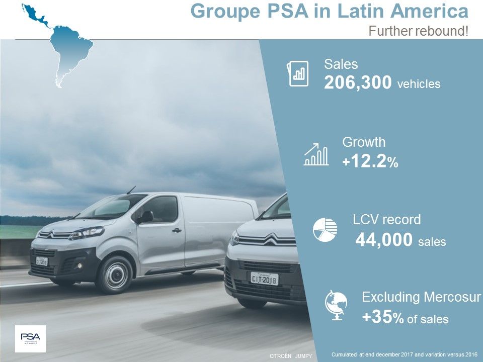Mimo Evropu se LUV ofenzíva skupiny setkává s prvními úspěchy: v Eurasii vzrostly prodeje o 55 %, v 1. pololetí 2018 bude navíc zahájena místní výroba vozů Nový Peugeot Expert a Nový Citroën Jumpy. V Latinské Americe se prodeje zvýšily o 13 %, pro rok 2018 je připravena obnovená řada výrobků a kompletní nabídka služeb.