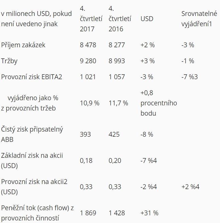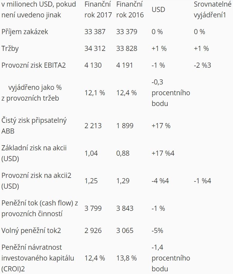 2. Veličiny mimo GAAP viz „Supplemental financial Information and definitions“ v příloze Q3 2017 Financial Information k této tiskové zprávě na www.abb.com.