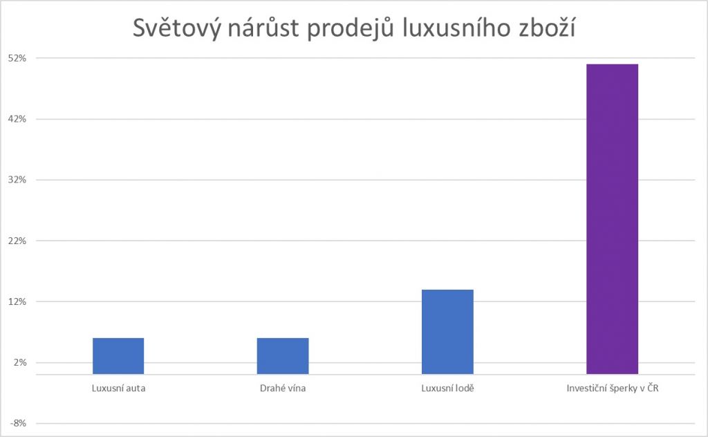 Pokud by se aktuální stav světové ekonomiky měřil objemem prodaných luxusních předmětů, byla by globální situace nadmíru pozitivní. Rok 2017 a 6,7 bilionu korun celosvětově vynaložených na osobní luxusní předměty je totiž historicky nejvyšší částka. Objem nákupů luxusního zboží a luxusních zážitků vloni vystoupal na 30,8 bilionu korun, což je o 5 % více než v roce 2016. Údaje uvádí studie poradenské společnosti Bain & Company. Rostoucí zájem o luxus je i v České republice. Například největší české klenotnictví ALO diamonds zvýšilo počet prodaných investičních šperků v cenové kategorii nad 100 000 Kč o 37 %.