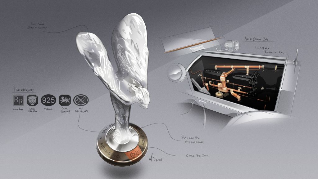 Soška Spirit of Ecstasy z ryzího stříbra, múza doprovázející všechny od roku 1911 vyrobené vozy, odkazuje na průkopnické dědictví předchůdce tohoto automobilu. Speciálně vytvořený punc AX201, registrační značka původního „Silver Ghostu“, bude vyražen Puncovním úřadem ve spodní části každé ze sošek, což je pocta, které se nedostane každému. Společně s puncem AX201, označením kvality a znaku příslušného městského Puncovního úřadu, se zde objeví druhý unikátní punc „RR“, tedy stejnojmenný znak automobilky, který zde slouží jako povinné označení výrobce a dokládá původ tohoto vozu.