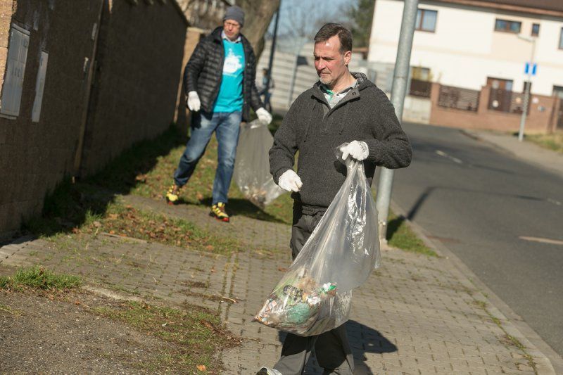 Neobvyklý pohled se dnes naskytl obyvatelům sídliště u kolínské vodárny. Hned od rána se tu objevily desítky lidí v modrých či růžových tričkách s nápisem Jedu v tom a s velkými pytli na odpadky.