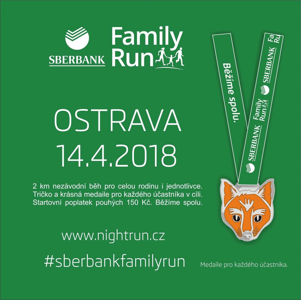 Sberbank Family Run je určen pro celé rodiny, včetně dětí, babiček a dědečků. Na trati jsou vítány i malé děti v kočárcích. Vzdálenost 2-3 km není nijak náročná a závod lze navíc klidně jen projít. Každý zaregistrovaný závodník dostane tričko, startovní číslo a také krásnou cílovou medaili s liškou. To vše s logem Sberbank Family Run. Online registrace probíhají na stránkách Night Run a přihlásit se dá i na místě na Masarykovo náměstí v Ostravě v sobotu od 16 do 18.15 hodin. Účastníky Sberbank Family Run před startem zahřeje rozcvička s trenérem a v 19 hodin rodiny společně vyběhnou.