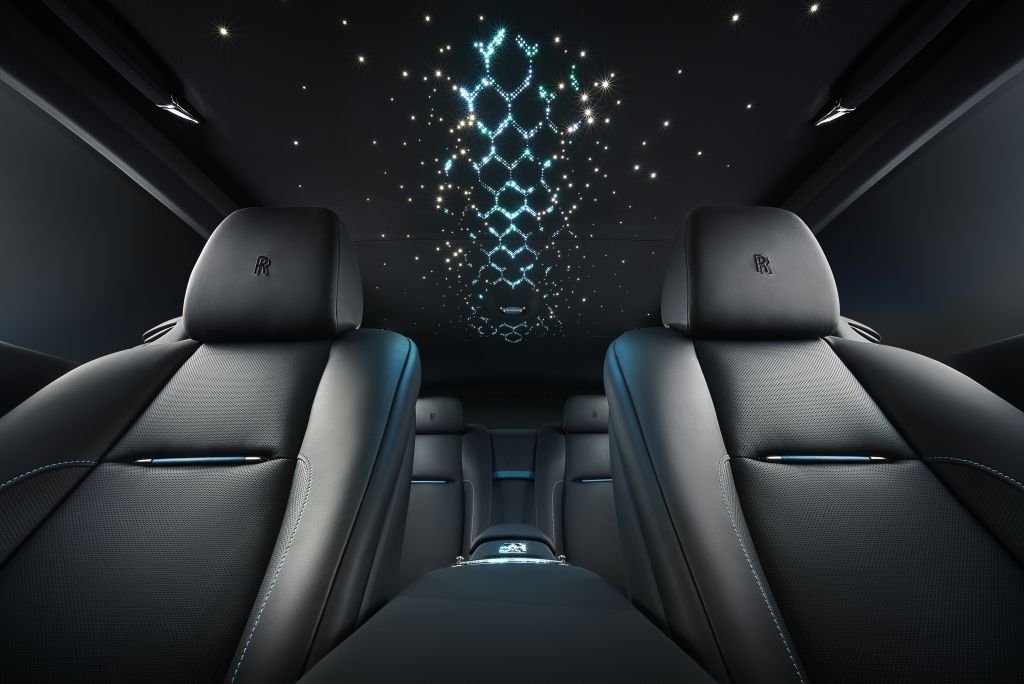 Zřejmě nejvíce strhujícím vyjádřením technické zručnosti je interpretace tématu diamantů na hvězdném čalounění stropu modelu Wraith Adamas. Zde je 1340 jednotlivých světelných bodů z optických vláken uspořádaných tak, aby vytvořily obrazec připomínající krychlovou molekulární strukturu diamantu. Zobrazený motiv navíc připomíná páteř, která probíhá interiérem zpředu dozadu. Hvězdné čalounění stropu je dostupné v obou odstínech a perfektně tak ladí s ostatní barevnou kombinací vozu. Jeho součástí jsou barevné přechody, jež využívají vybrané tóny tak, aby se celkový dojem dále zvýraznil.