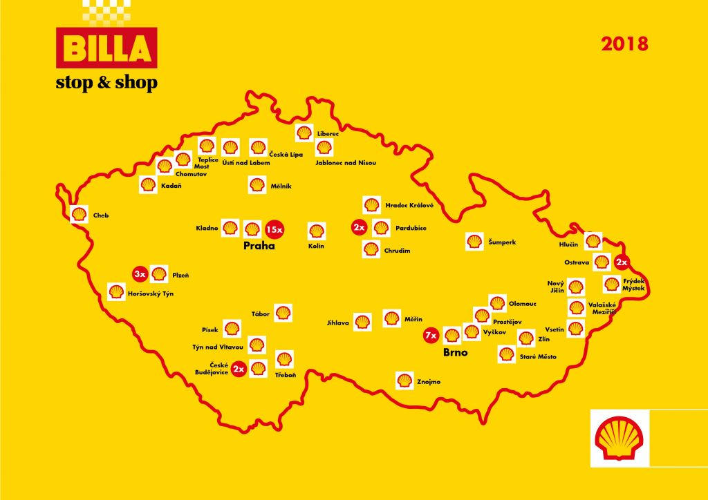 Otevřením 64. čerpací stanice s prodejním konceptem BILLA stop & shop se rozšířila možnost rychlého nákupu zejména základních potravin na více než třetinu sítě čerpacích stanic Shell v České republice. Nejčastěji zákazníci nakupují pečivo (kaiserky), vybírat ale mohou z více než 1 000 různých položek zboží nejvyšší jakosti.