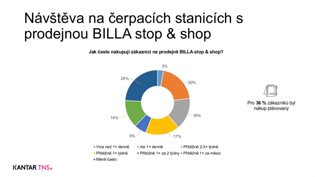 Lidé si na rychlé nákupy na čerpacích stanicích SHELL zvykli. Pro 36 % dotázaných zákazníků se jednalo o plánovanou návštěvu. Více než polovina v prodejně nakupuje minimálně jednou týdně, téměř čtvrtina pak každý den. Celých 39 % respondentů, kteří koncept využívají pravidelně nebo alespoň občas, nákup nespojuje bezpodmínečně s tankováním.