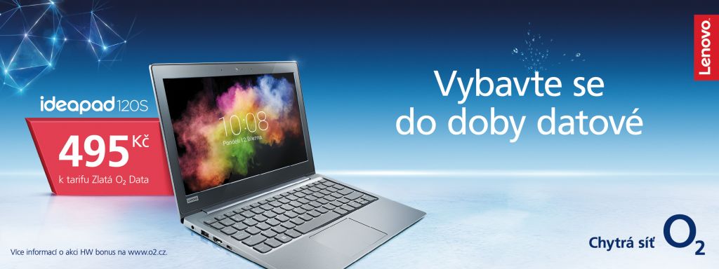 O2 od května obohacuje nejen nabídku tarifů, ale také zařízení. K mobilům a tabletům přibude notebook Lenovo IdeaPad 120. Tentolehký přenosný počítač s elegantním designem, který je dostatečně výkonný pro práci i zábavu bude k tarifu Zlatá O2 data možné získat za 495 korun.