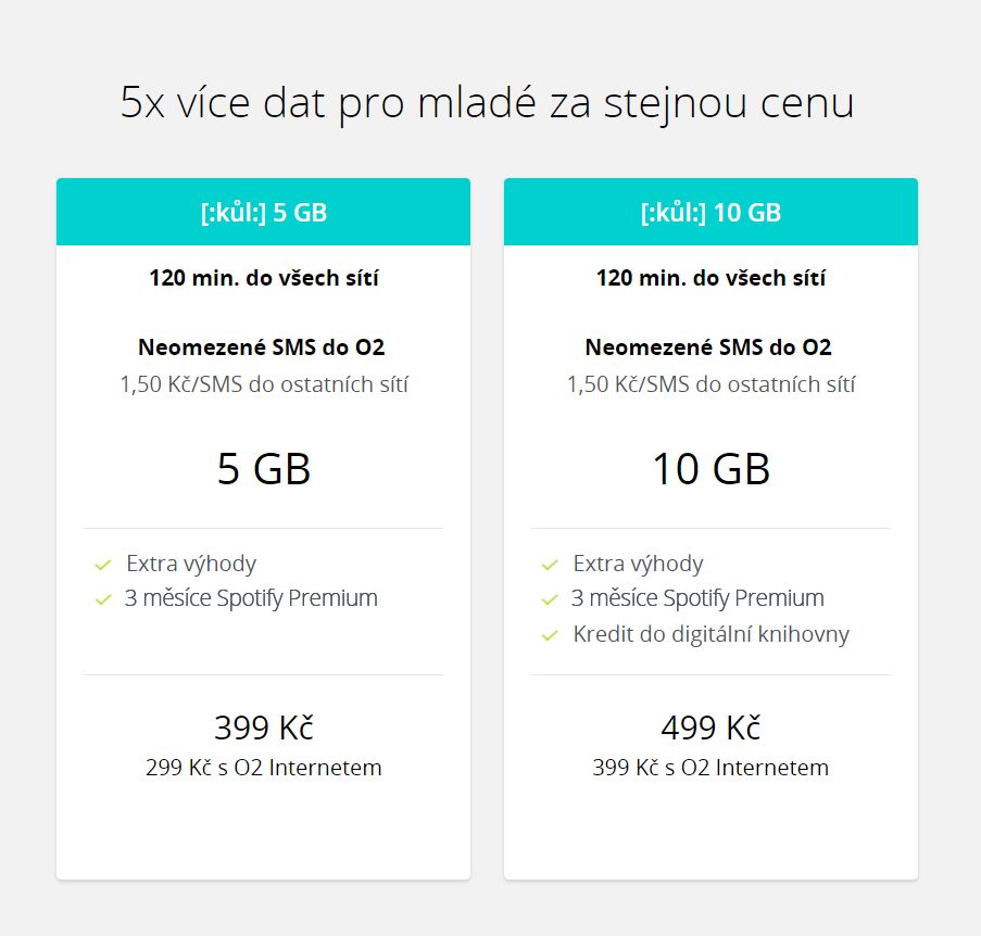 O2 od května vylepšuje také tarify O2 kůl určené pro lidi do 26 let. V těch zpětinásobí objem dat, aniž by se změnil měsíční paušál. Mladí zákazníci získají například za 499 korun 10 GB dat na každý měsíc a k tomu bonus 4 000 korun na nový mobil.