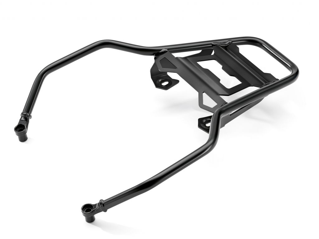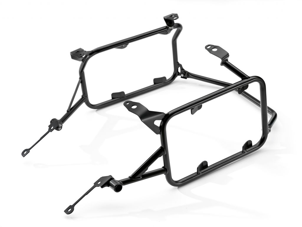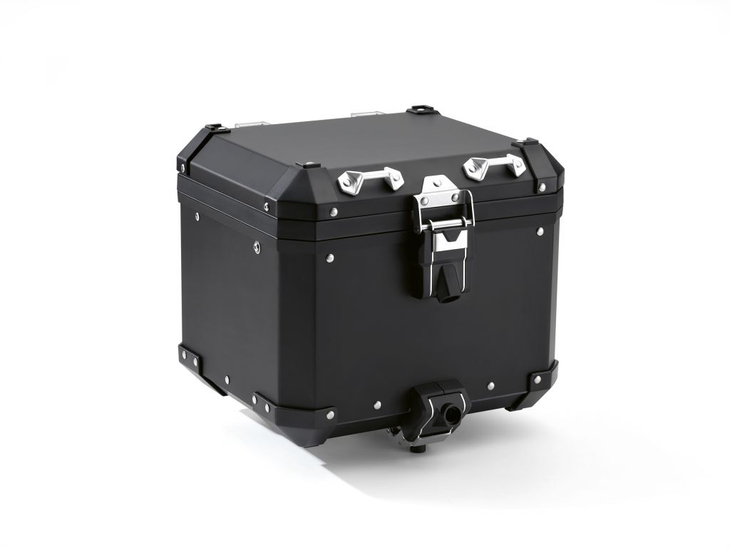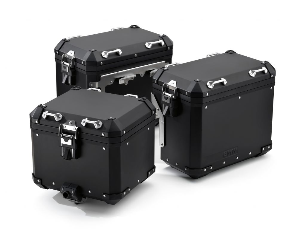 Hliníkový systém nosičů zavazadel je tvořen dvěma bočními kufry (36 + 44 l) a jedním zadním horním kufrem (32 l) a je praktickým řešením pro bezpečné uložení zavazadel. Každý z černých eloxovaných kufrů má dva zámky a je také vybaven oky pro bezpečné uchycení dalších zavazadel. Mezi další příslušenství patří rovněž vnitřní tašky pro boční i zadní kufr, opěrka zad pro zadní kufr a madla. K dispozici je také systém zamykání jedním klíčem.