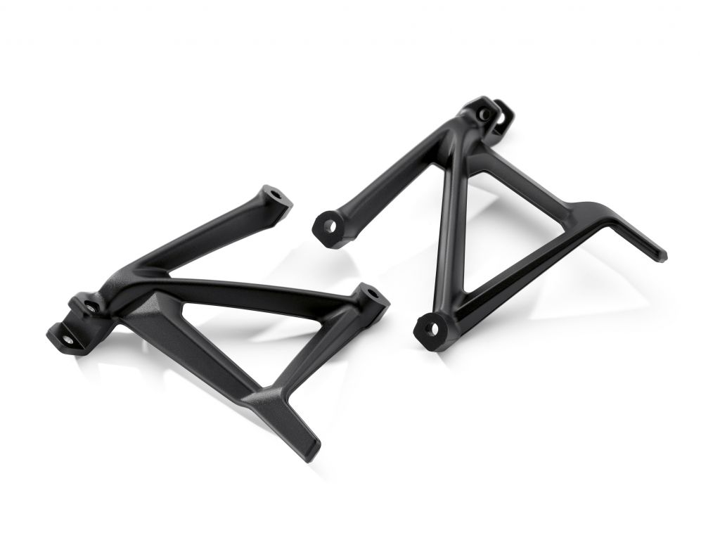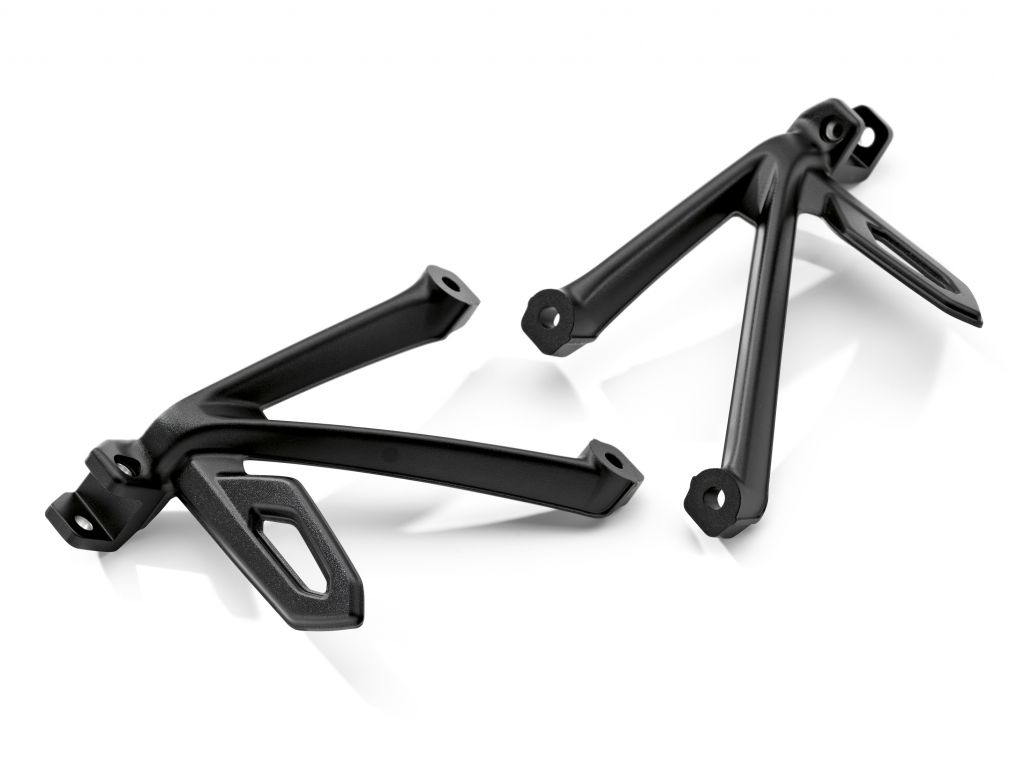Tvar a rozměr těchto držáků stupaček odpovídá těm na sériovém motocyklu. Umožňují uchycení stupaček spolujezdce k motocyklu a jejich součástí je také ochrana kotníku. Mají matně černou eloxovanou povrchovou úpravu.