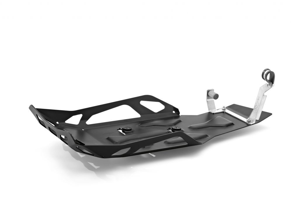 Tento robustní hliníkový chránič motoru je vyroben z 2 mm tlustého hliníkového plátu a je tak speciálně navržen pro jízdu v terénu. Je výrazně delší a širší než standardní chránič motoru, zajišťuje efektivní ochranu před kameny a ochraňuje tak spodní část motoru před poškozením. Má černě eloxovaný povrch a jeho držák je vyroben z odolné nerezavějící oceli.