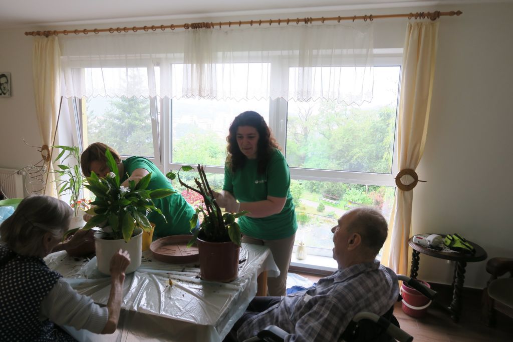 Sberbank CZ dlouhodobě spolupracuje s Diecézní charitou Brno, která pomohla vytipovat domov seniorů, v němž banka připravila dobrovolnický den pro své zaměstnance. „Dopoledne jsme měli domluvené drobné práce na zahradě, společně jsme vysadili květiny, upravili záhonky a s klienty domova si při práci popovídali,“ líčí dobrovolnice a zároveň vedoucí pobočky Brno Vaňkovka, Lenka Hojačová. „Po obědě jsme upekli štrůdly k odpolednímu čaji. Poté jsme vyráběli sluníčka, čímž jsme symbolicky oslavili Den Slunce, který připadl na tento den.“ Podvečer dobrovolníci strávili povídáním o cestování, četli z knih, a dokonce došlo i na harmoniku a zpěv. Klienti domova uvítali program, který jim zpestřil den a přinesl příjemné zážitky.
