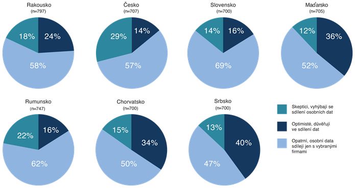 Soukromí si Češi střeží v porovnání s ostatními pozorovanými zeměmi vůbec nejvíce. Podle zjištění IMAS International je skupina skeptiků odmítajících sdílet osobní data mezi Čechy zdaleka nejpočetnější. Zatímco v Česku se takto negativně ke sdílení svých dat staví 29 % Čechů, na Slovensku je tato skupina poloviční (14 %).