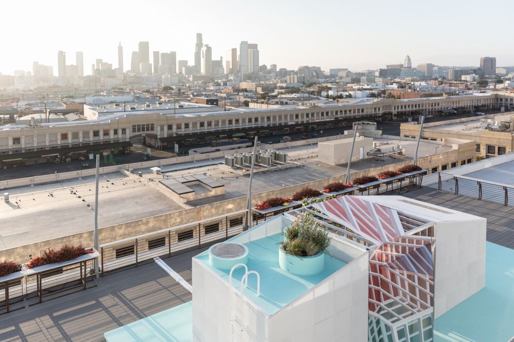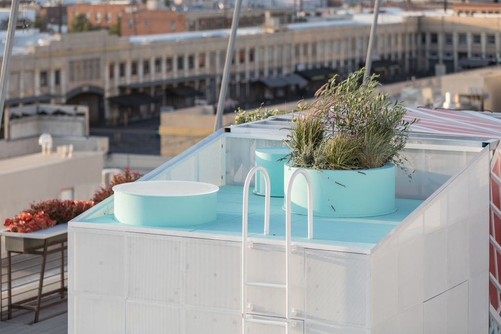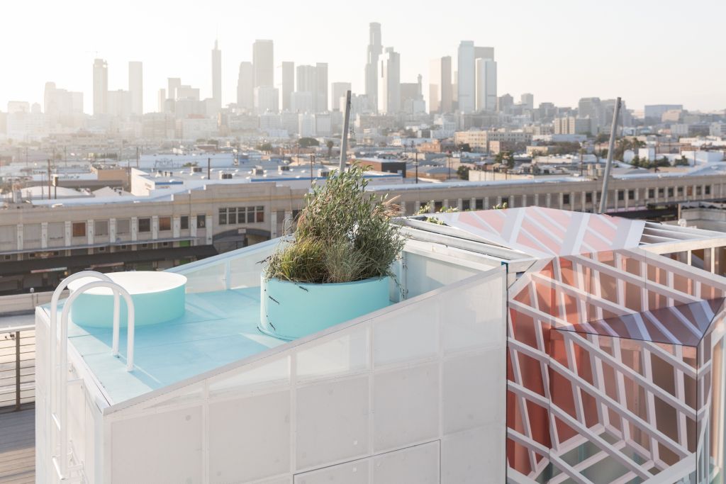 Občané Los Angeles přikládají velkou důležitost propojení s životním prostředím. MINI LIVING Urban Cabin v LA to řeší tak, že v centru města nabídne městskou oázu. Dvojice architektů FreelandBuck z Los Angeles vytvořila v experimentálním prostoru kabiny závěsnou zahradu spolu s perforovanými plochami, kterými dovnitř proniká množství vzduchu a světla. Dvojice také navrhla dvě vnitřní kostky nabízející kaleidoskopický vizuální efekt. Výsledkem je atmosférická souhra světelných odrazů a vizuálních iluzí, která se podobá iluzivní malbě Trompe l'oeil. Ven vyčnívající závěsná zahrada v kombinaci s touto sugestivní hrou světla návštěvníkům navozuje pocit, že jsou na venkově, třebaže se nacházejí uprostřed města.