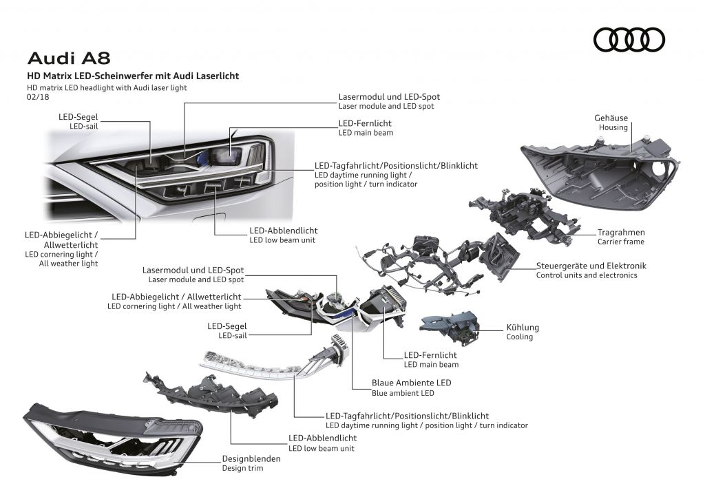 Vítězství pro Audi A8 oceňuje četné inovace ve výbavě vlajkové lodi značky. V hodnocení byl na prvním místě uveden aktivní podvozek. Při bočním nárazu minimalizuje riziko pro cestující extrémně rychlým zvýšením karoserie o několik centimetrů. Důležité body přinesly velké limuzíně rovněž funkce upozorňování na nebezpečí při vystupování, laserový skener a světlomety HD Matrix LED s laserovými světlomety Audi.