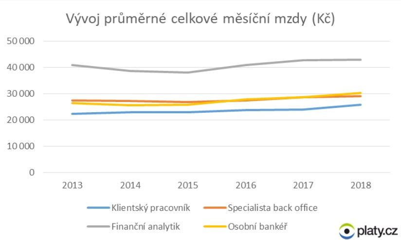 Oba obory sice stále patří do desítky těch nejlépe ohodnocených, ale tempo růstu mezd je v nich v posledních dvou letech nižší. Také neplatí, že pracovat v bance znamená automaticky mít dobrý příjem. Například průměrná hrubá mzda uvedená klientskými pracovníky na platovém portálu Platy.cz je v letošním roce 25 800 Kč, což je srovnatelné s ohodnocením v některých obchodních řetězcích. A to i přesto, že u klientských pracovníků došlo meziročně k nárůstu mzdy o téměř 7,5 %, přičemž například finančním analytikům meziročně hrubá mzda stoupla o necelého 0,5 %.