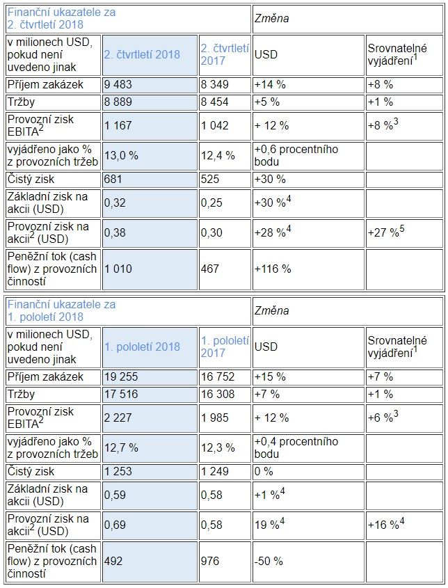 2) Veličiny mimo GAAP viz „Supplemental financial Information and definitions“ v příloze Q2 2018 Financial Information k této tiskové zprávě na www.abb.com.