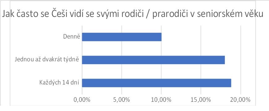 „Co se týče osobního kontaktu Čechů se svými rodiči a prarodiči, pak z aktuálního průzkumu Rondo data vyšlo že nejčastěji se vídají přibližně každých 14 dní (18,8 %). Jednou až dvakrát týdně své starší blízké navštěvuje 18 % a denně 10 % respondentů,“ informuje Tomáš Kučera, jednatel Rondo Data.