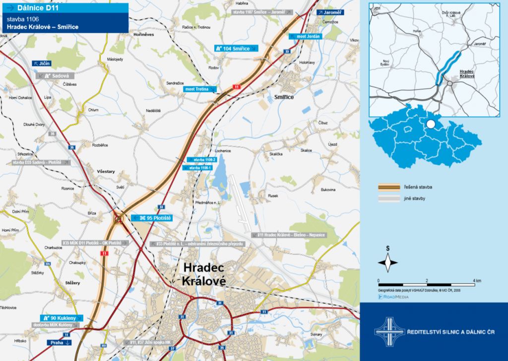 V úterý 2. října byla zahájena výstavba dálnice D11 Hradec Králové – Smiřice. Stavba řeší pokračování dálnice D11 od Hradce Králové severním směrem na Polsko. Spolu s navazujícím úsekem mezi Smiřicemi a Jaroměří, který byl zahájen v květnu letošního roku, odvede dálnice dopravu z dnes již kapacitně nedostačující silnice I/33 v úseku Hradec Králové – Jaroměř.