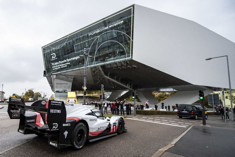 Ve čtvrtek 25. října dopoledne dojelo Porsche 919 Hybrid v nevšedním konvoji do Muzea Porsche. Mark Webber a Marc Lieb převezli za asistence doprovodných vozidel na základě úředního povolení dva exempláře úspěšného prototypu pro Le Mans z vývojového centra ve Weissachu do Muzea Porsche v Zuffenhausenu. S celkovým výkonem více než 2000 k absolvovali trasu o délce 25 kilometrů z Porschestraße 911 na Porscheplatz 1 po veřejných komunikacích. Součástí uvítací akce v muzeu bylo předčítání Dietmara Wundera, který je mimo jiné hlasem Daniela Craiga alias Jamese Bonda 007. Wunder četl z knihy „Legendary – Das Porsche 919 Hybrid Projekt“, která bude vydána v prosinci.