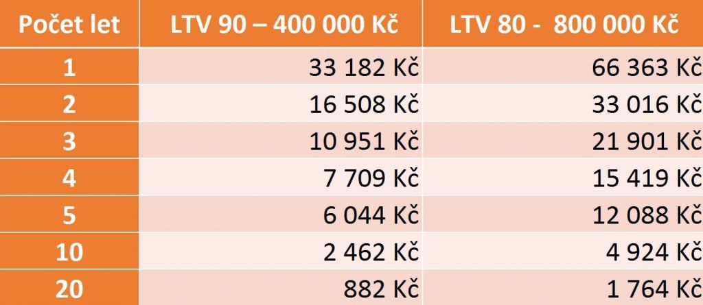Zajistit si spoludlužníka, který jim navýší celkové příjmy, pokud nebudou stačit.V případě první možnosti a za současných cen bude nový žadatel dle příjmů šetřit pět až sedm let. S tím je třeba počítat. Níže je znázorněno, jak dlouho bude třeba na požadovanou částku spořit a kolik si měsíčně odkládat v případě zastavované nemovitosti v hodnotě 4 milionů korun. V případě LTV 90 klient potřebuje mít vlastní zdroje ve výši 400 000 korun a u LTV 80 pak 800 000 korun.
