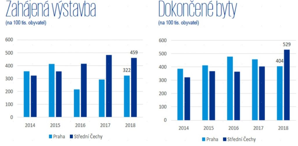 Ve Středočeském kraji se staví víc než v metropoli. V minulém roce tam byla zahájena výstavba 459 bytů na 100 tisíc obyvatel, zatímco v metropoli pouze 322 a tento nepoměr lze sledovat v posledních třech letech. Důsledkem je, že nabídkové ceny bytů ve Středočeském kraji rostou pomaleji než v Praze. „Nůžky se otevřely. Dostupnost bydlení v Praze se snížila, ve Středočeském kraji vztaženo k metropoli vzrostla,“ uvedl Kliment.