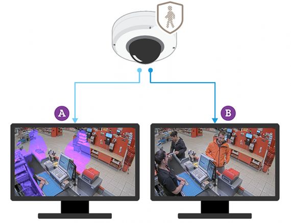 AXIS Live Privacy Shield porovnává živý obraz z kamery se zadanou scénou pozadí a aplikuje podrobnou a dynamicky se měnící transparentní masku na oblasti, kde se v obrazu dějí změny. Jinými slovy, pohybující se osoby a objekty se objeví na obrazovce jako prázdné (transparentní) obrysy na obrázku pozadí. Celý tento proces je rychlejší než mrknutí a umožňuje efektivně dodržovat pravidla a regulační požadavky v oblasti ochrany soukromí a osobních údajů.