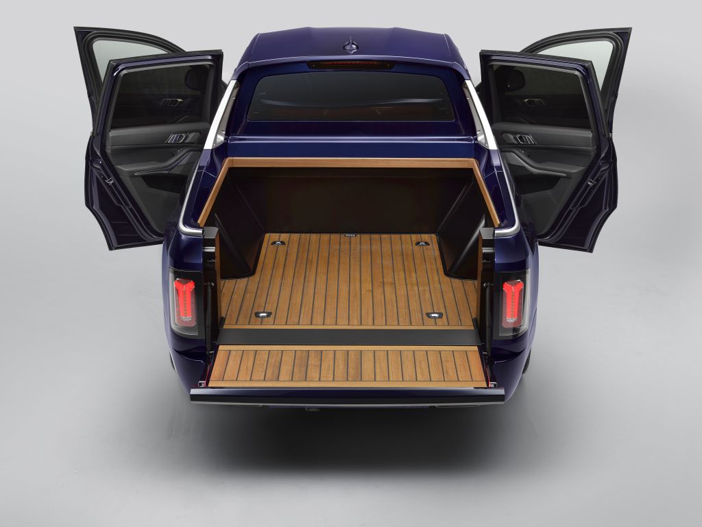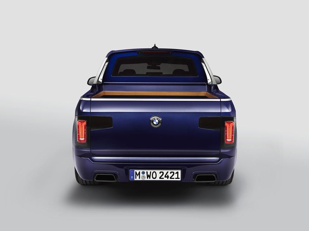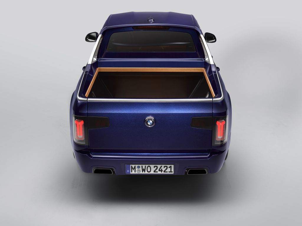 Kromě interiéru, který poskytuje luxusní prostředí pěti osobám, nabízí BMW X7 Pick-up také rozměrný prostor pro náklad. Délka nákladové plochy se mění od 140 cm (pokud je zavřená) až po 200 cm (pokud je otevřená). Díky chytrému využití uhlíkových kompozitů CFRP na střeše, zadních dveřích a zadním výklopném víku bylo možné proti sériovému modelu dosáhnout úspory dalších 200 kg, a to i přes fakt, že karoserie je o 10 cm delší. Ruku v ruce s vysoce kvalitním obložením ložné plochy teakovým dřevem jde také o lemy, rukojeti a ozdobné lišty vyrobené technologií zapékání práškového materiálu laserovým paprskem (SLS 3D). I z těchto postupů je jasné, jaká inovativní odbornost a technická přesnost je tímto projektem prezentována. Kombinace teakového dřeva lakovaného do barvy medu a metalického laku BMW Individual Tanzanite Blue (modrá), exkluzivního laku v barvě námořní modré, který při vystavení slunci vyniká výjimečnou hloubkou, je inspirována jachtingem a dodává vozu velmi sofistikovaný vzhled.