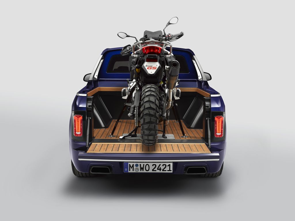 Ručně vyrobená nákladová plocha se vyznačuje propracovaným povrchem z leštěného dřeva, praktické je výškově nastavitelné dvouúrovňové vzduchové odpružení a nechybí ani mnoho špičkových detailů výbavy, díky nimž se BMW X7 Pick-up stává ideálním společníkem pro nejrůznější každodenní použití a mnohé další aktivity. Přestavbu dotváří BMW F 850 GS – výkonný motocykl určený pro dobrodružství – umístěný přímo na nákladové ploše. Společně se dostanou dokonce i do těch nejodlehlejších koutů světa.
