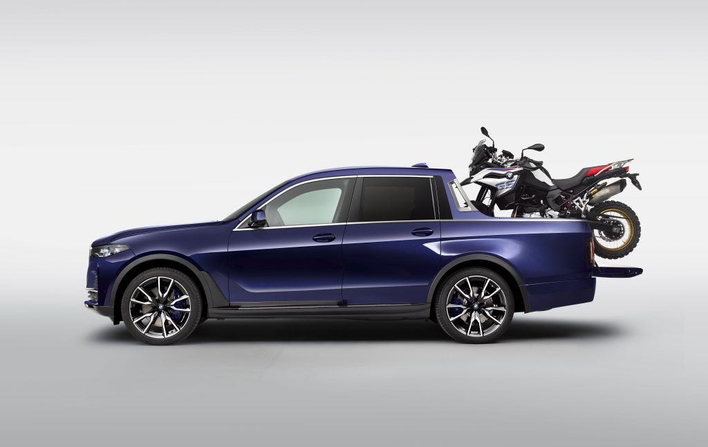 Na nákladové ploše přestavěného vozidla stojí BMW F 850 GS, které se k akci BMW Motorrad Days hodí zcela dokonale. Motocykl BMW F 850 GS v sobě kombinuje komfort při dlouhém cestování, sportovní dynamiku a skvělé off-roadové schopnosti, což jsou vlastnosti výbornědoplňující kvality BMW X7 Pick-up. V běžném každodenním životě jsou BMW X7 Pick-up a BMW F 850 GS věrnými společníky: díky jejich výjimečným jízdním schopnostem na zpevněném i nezpevněném povrchu je samotná cesta cílem.