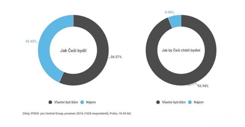 Češi přitom podle průzkumu agentury IPSOS pro Central Group preferují právě vlastnické bydlení před nájmem, ve kterém bydlelo 43 procent z dotázaných. Celých 94 procent z celkem víc než tisícovky respondentů však uvedlo, že by rádo nemovitost přímo vlastnilo. Jako hlavní důvod uvedli nezávislost na pronajímateli či zajištění na stáří, nejčastějším důvodem pro volbu nájemního bydlení naopak byly chybějící prostředky pro získání vlastní nemovitosti.